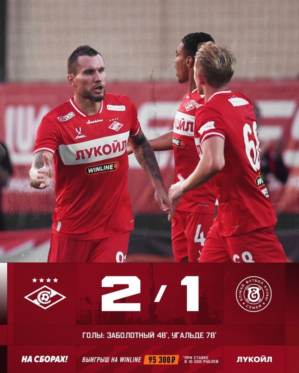 Вдобавок зимой подписали Ивана Миладиновича, в прошлом крепкого защитника «Сочи». А у себя в Семее клуб выступает на стадионе…«Спартак»! В какой-то степени москвичи сыграли с братской командой. А может, и нет — оборонялись номинальные гости совсем не по-братски — сели в низкий блок и плотно опекали нападающих соперника.