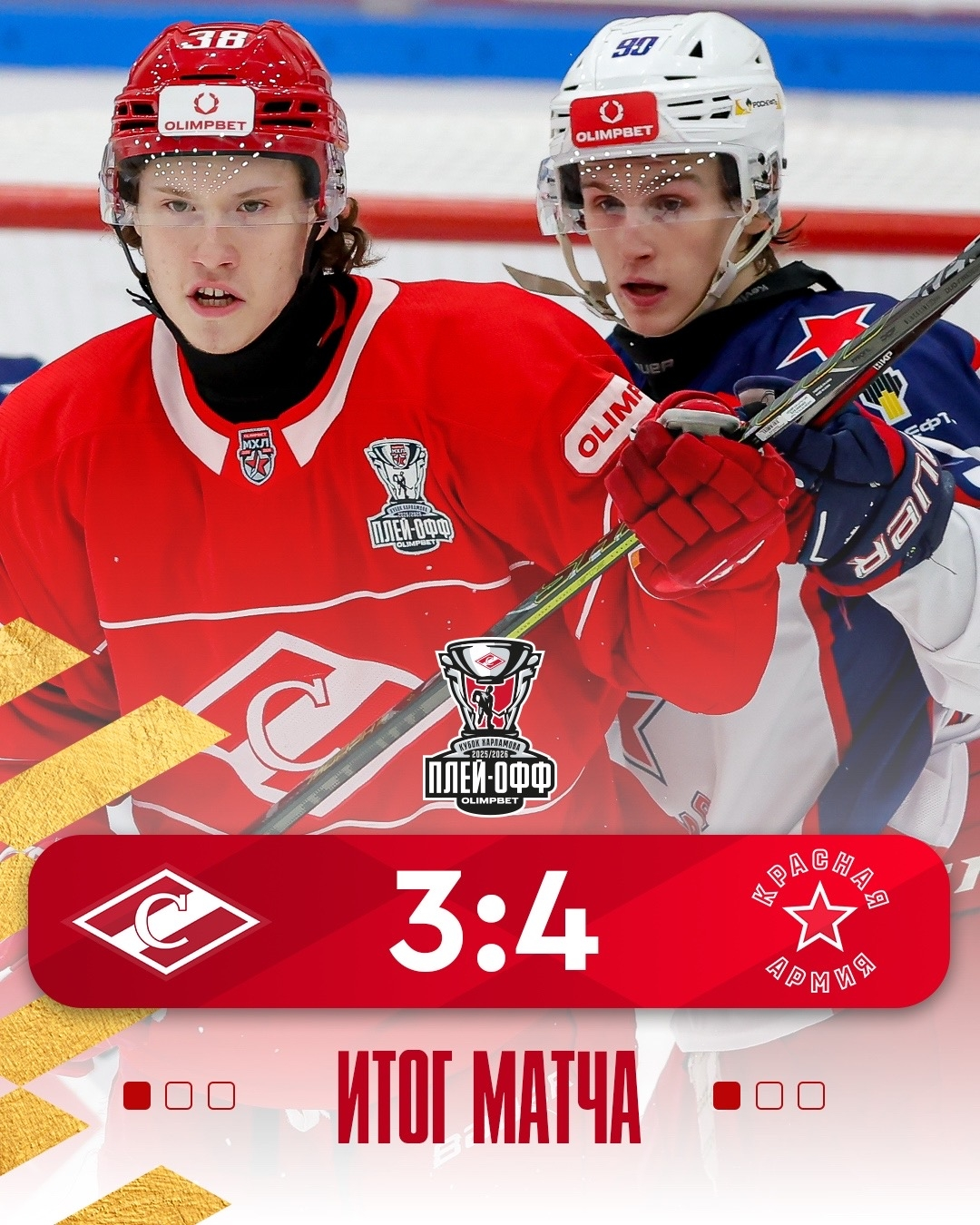 МХК «Спартак» со счетом 3:4 уступил «Красной Армии» по ходу игры проигрывая со счетом 0:3.